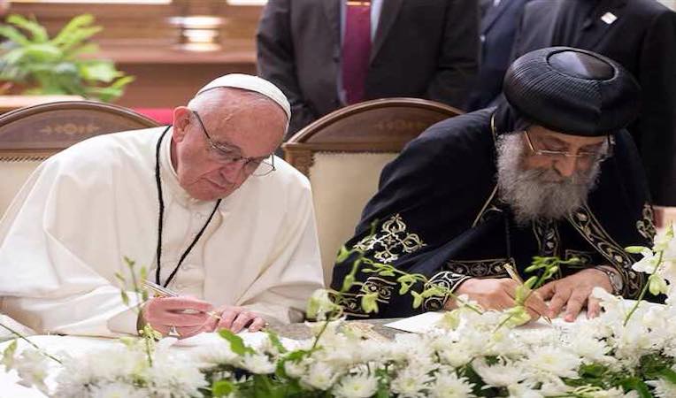 في يوم الجمعة ٢٨ ابريل ٢٠١٧ و في قلب القاهرة و تحديداً في مبنى الكنيسة المرقسية بالعباسية وقع كل من البابا فرنسيس الأول، بابا الفاتيكان، والبابا تواضروس الثاني، بابا الإسكندرية،،،،،«اتفاقا تاريخيا» على حد وصف وسائل الإعلام يومها، و كان الاتفاق يقتضي بتوحيد المعمودية بين الكنيستين، وعليه فمن أراد تغيير ملته من كنيسة لأخرى لن يكون بحاجة لإعادة التعميد، منهيا بذلك شقاقا لاهوتيا (دينيا) بين الكاثوليك والأرثوذكس استمر ١٦ قرنا. و للأسف مر الحدث او الخبر علي الشعب المصري المشغول دائماً بالكرة و توافه الأموار مروراً صامتاً و كأن شيئاً لم يحدث، في الوقت الذي احدث فيه الخبر او الحدث هزة عنيفة نتج عنها قيام صراع قديم مخفي داخل الكنيسة المصرية، قتل فيه البعض و تغيرات فيه قوانين كنسية من شأنها جعل الصراع اشد، و لعل اخر هذه النتاءج كان قتل الأب زينون المقاري داخل دير المحرق و ان كان الخبر قد تمت نشره بصيغة "انتحار" كالعادة .... .....اقرأ المزيد