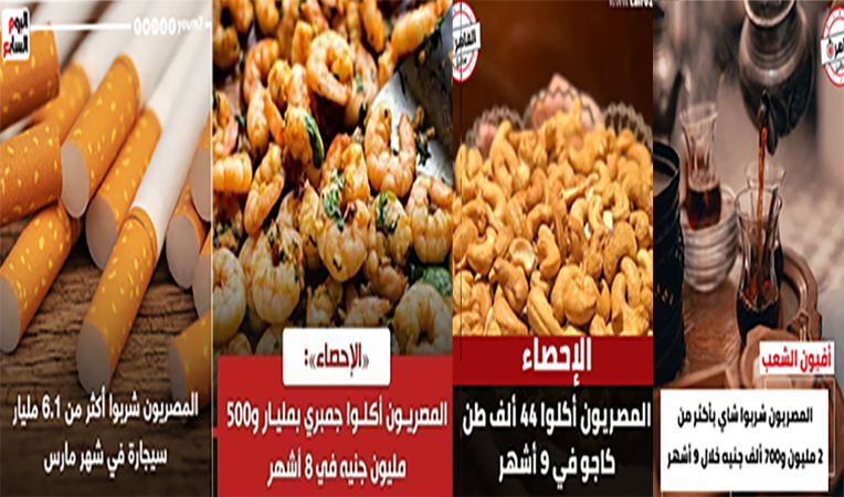 نماذج للاحصائيات التي تنشرها المواقع الإخبارية المصرية